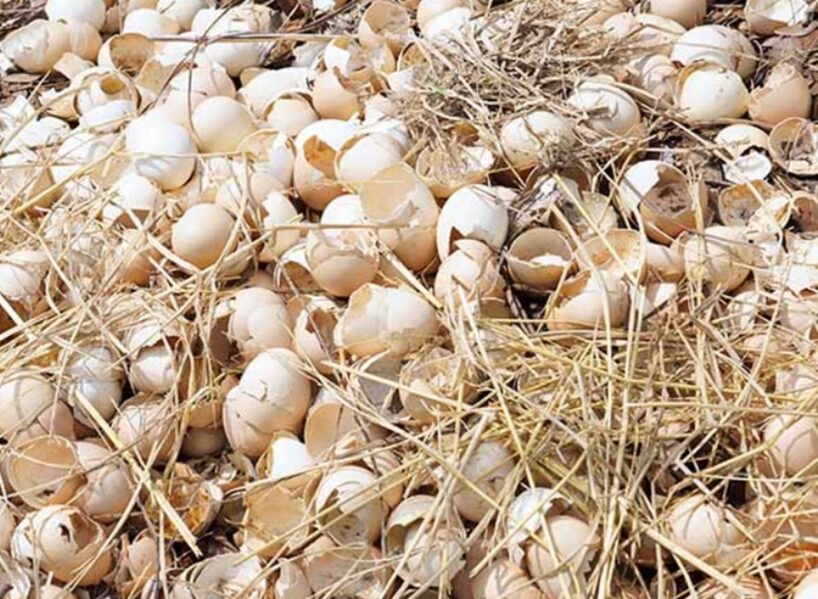 Šeit svarīga ir pareiza tehnika: čaumalas jāsasmalcina rupjos gabaliņos (nevis pulverī) un blīvā gredzenā jāizkaisa ap jauno augu stumbriem.