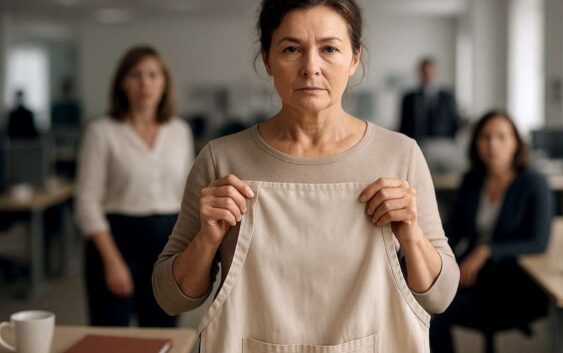 “Ērta vientiesīte,” — atmiņā atkal uzpeldēja teiktais. Marta lēnām aizgāja līdz savam galdam, atvēra atvilktni, lai izņemtu darba priekšautu. Viņa to nēsāja jau trīs gadus — lai nenosmērētu drēbes, uzkopjot biroju vai mazgājot traukus. Kolēģi turpināja strādāt. Neviens nepievērsa viņai uzmanību. Marta novilka priekšautu, glīti to salocīja un nolika uz Olitas galda.