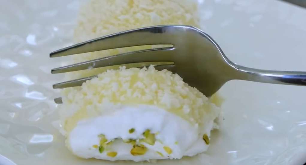 Uzmanīgi sarullējiet mīklu rullī, sagrieziet porcijās un, ja vēlaties, pārkaisiet ar kokosriekstu. Rezultātā ir neticami maigs, pienains turku deserts, kas pazūd no galda dažu minūšu laikā. Nav nepieciešama cepeškrāsns, nav olu un minimāla piepūle.