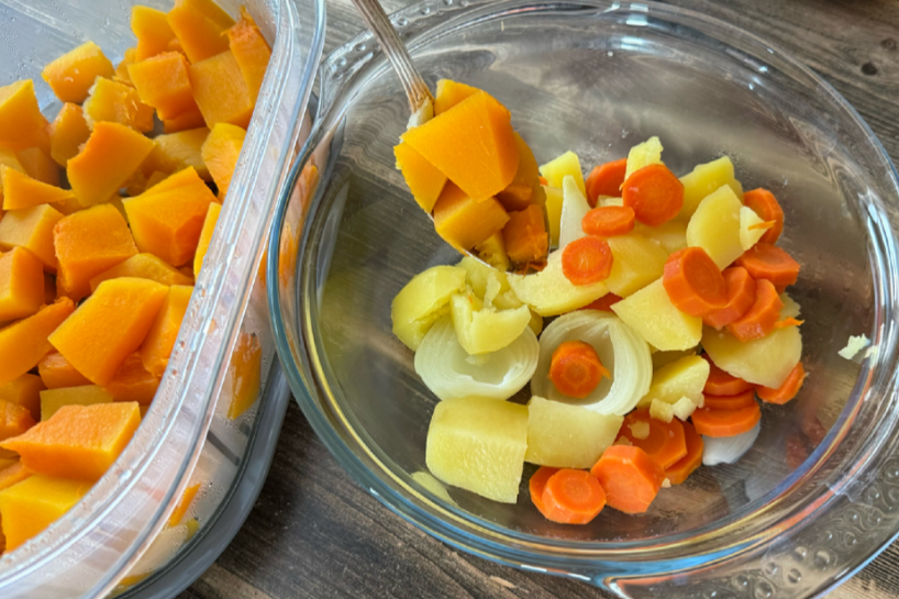 Tagad mums dārzeņi jāsagatavo līdz mīkstumam. To var izdarīt: