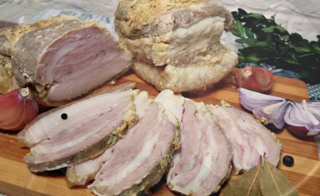 Šī lieliskā uzkoda ir jau kļuvusi par klasiku mūsu ģimenē, un to gatavojam gan uz svētkiem, gan ikdienā. Tā papildinās jūsu pamatēdiena karti, jo šādi pagatavoto gaļu var pasniegt kopā ar jebkuru garnīru. Vai vienkārši pasniedziet ar maizi, sinepēm, mārrutkiem vai adžiku. Tā būs lieliska uzkoda.