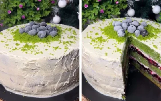 Šis deserts ir pagatavots no viegli pieejamām sastāvdaļām, un tā izskats vienmēr piesaista uzmanību. Šī spilgtā spinātu kūka ar ogu pildījumu ir moderns deserts, kurā spināti piešķir kūkai dabisku zaļu krāsu, neietekmējot garšu, un pildījums nodrošina īpašu skābumu.